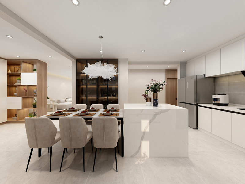 作为家中的用餐功能空间,餐厅在装修布局时除了要注重优雅温馨就餐氛围的营造,也要注重其收纳功能布局设计。餐厅收纳建议平衡“展示+储物”,提升就餐仪式感。