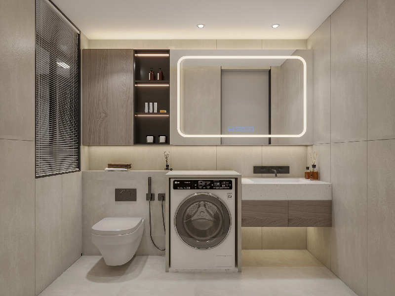 考虑到卫生间的使用特点,卫生间内部的家具选择需要考虑到防水防潮的特性,避免潮湿的环境影响家具寿命。