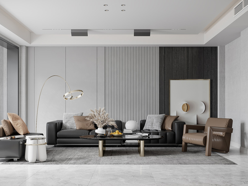 在室内色调选择遵循“上浅下深”的原则,顶面颜色浅一些,地面的颜色稍深一些,尽可能将视觉重点往下转移,掩盖层高的缺陷。