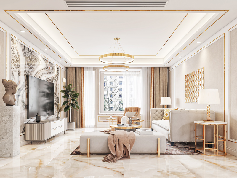 客厅简洁的基础搭配精致的软装配饰,给人时尚的轻奢感,呈现有格调的空间效果,轻奢氛围浓郁。