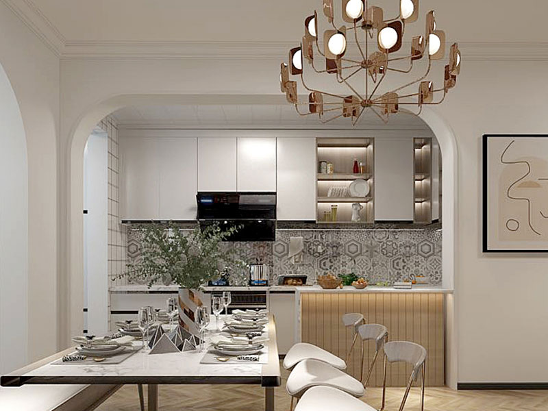 在装修厨房空间时,除了屋顶上的主灯,还应该在备菜区、烹饪区等,增加辅助灯源,为夜晚烹饪提供便利。