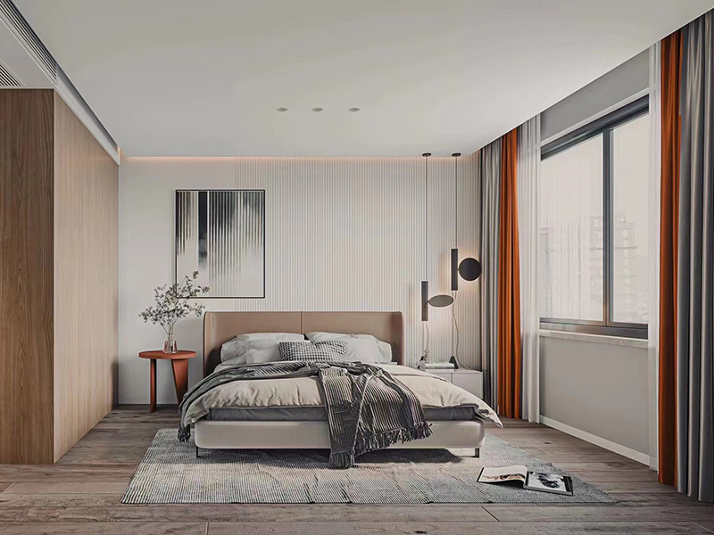木色和浅色系是卧室的主色系,减少凌乱色彩对视觉的干扰,让居住者可以拥有良好的睡眠环境,忘却工作带来的疲惫感。