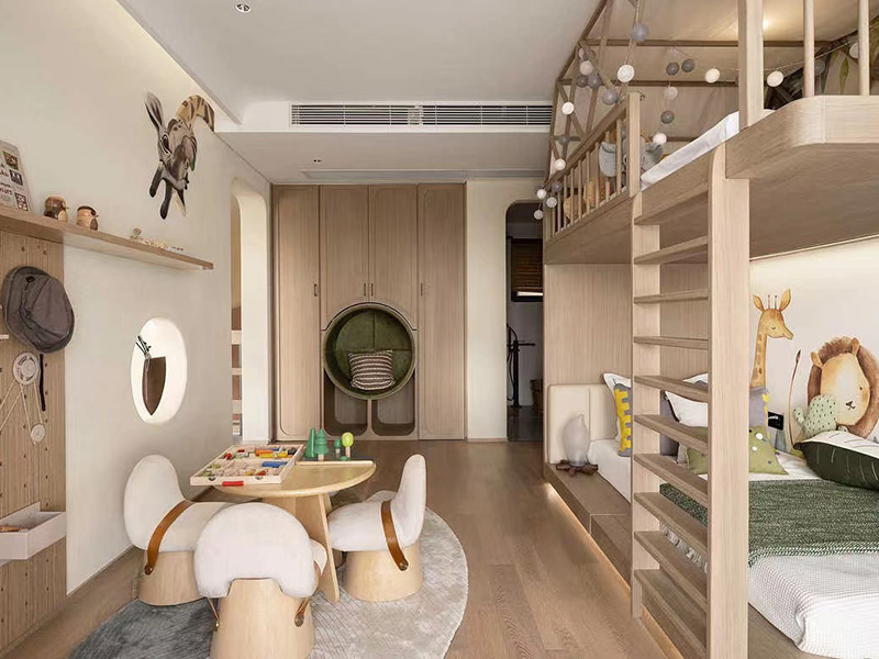 考虑到孩子的健康,要选择环保型的装修装饰材料,避免孩子被甲醛等装修污染物困扰。另外,考虑到孩子的用眼健康,儿童房的色彩、光线等方面要设计合理,以柔和和温暖基调为主。