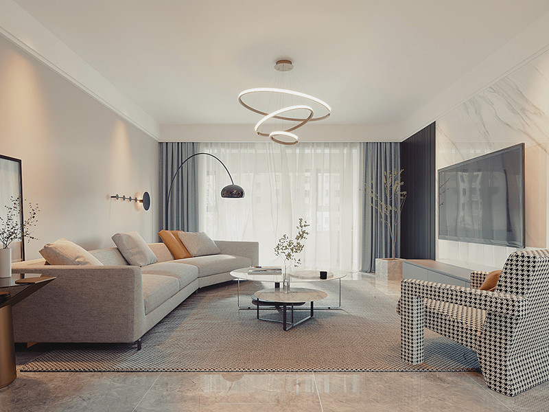 本案定位于现代风格,摒弃繁复造型装饰,从实用舒适角度出发,巧用布局、材质、色彩和光影等,打造时尚惬意的家。