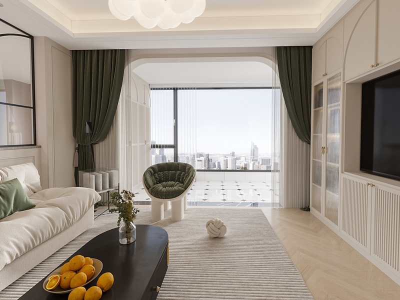 融合轻奢细节,通过浅木、低饱和色系与质感材质的搭配,奠定柔和松弛的空间基调。