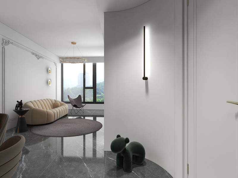 玄关区域光线较差,采用简洁时尚的灯带设计增进光线,提升空间的明亮度,设计感满满,简单舒适。