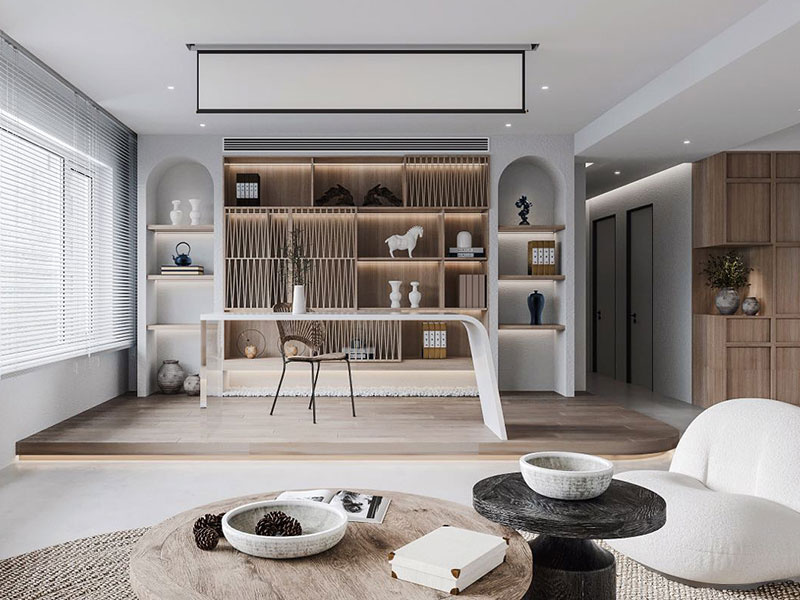 融合轻奢细节,通过浅木、低饱和色系与质感材质的搭配,奠定柔和松弛的空间基调。
