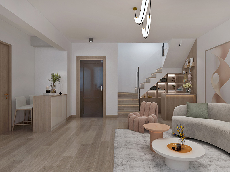 融合轻奢细节,通过浅木、低饱和色系与质感材质的搭配,奠定柔和松弛的空间基调。