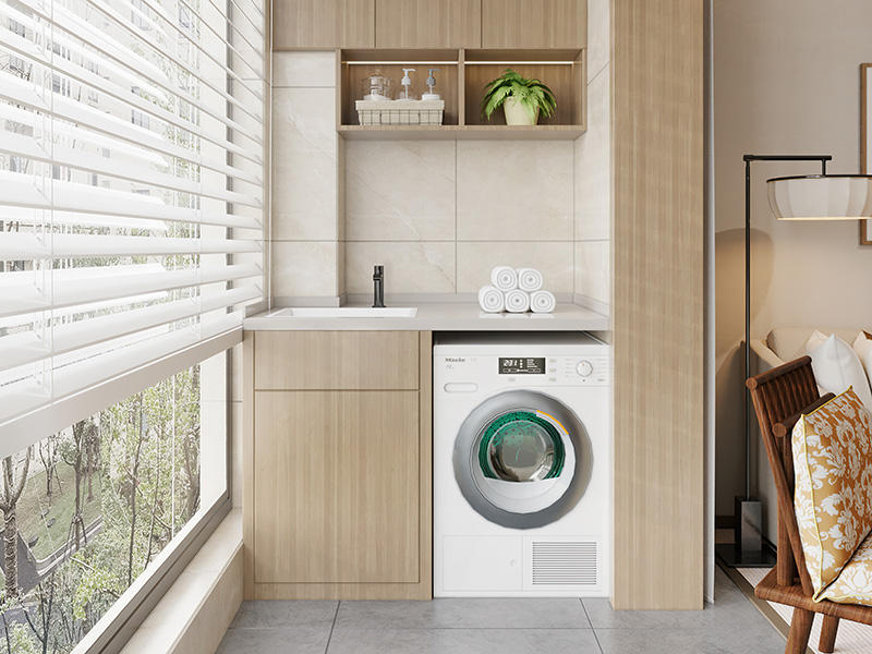 很多家庭在装修自家房子时,会选择将阳台打通处理,并纳入室内空间,彰显居室的宽敞与通透。在原阳台区域,设计收纳柜,并内嵌洗衣机等,呈现阳台洗衣房。