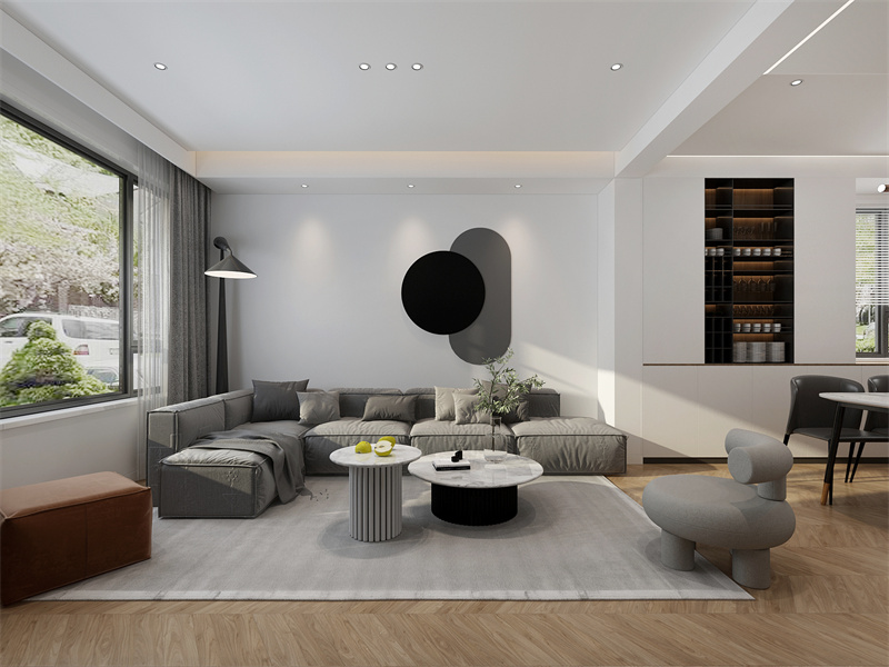本案以简约风格为内核,以灰白、木色为柔和主调,凭借利落线条、质感材质与功能化布局等,打造层次丰富的现代居家美学。