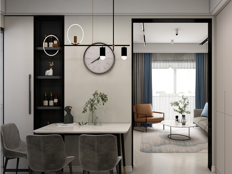 餐厅区域的布局相对独立,让就餐氛围更专注,上方照明设计提升亮度,使用更舒适,融入餐边柜保证收纳需求。