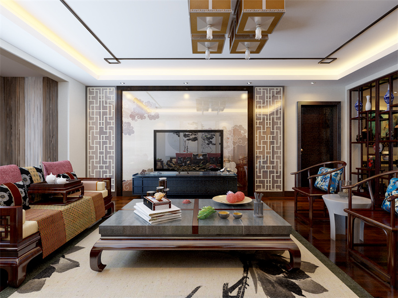 不管是硬装设计,还是软装搭配,均诠释新中式居室空间的对称美学,也展现居住者对品质生活的追求。