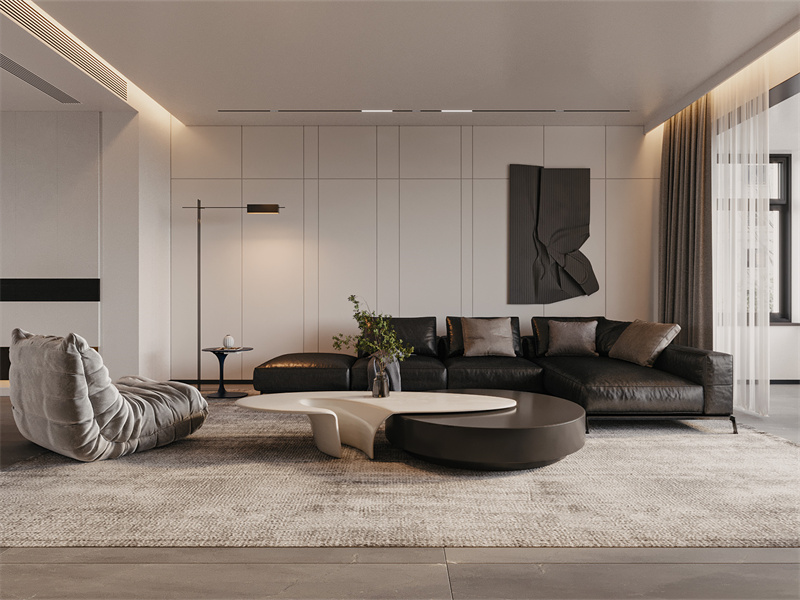 本案是大户型,基于极简风格的家居设计理念,以黑白灰为主色调,结合简洁时尚的软装,诠释优雅绅士的居室氛围。也巧用半开放式设计,提升整体空间的格调。
