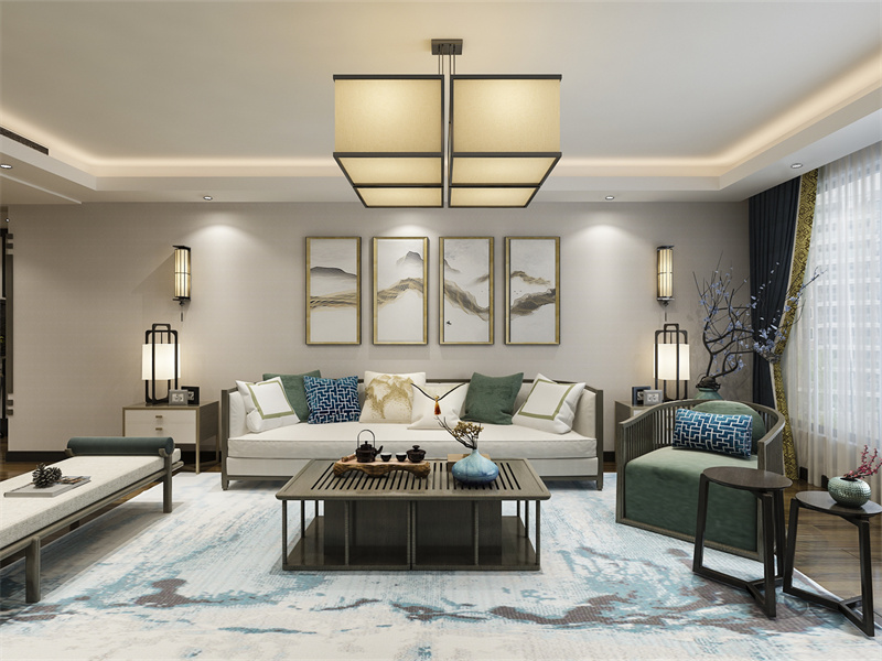 不管是硬装设计,还是软装搭配,均诠释新中式风格家居空间的对称美学,结合光影艺术,呈现宜古宜今的居室氛围。