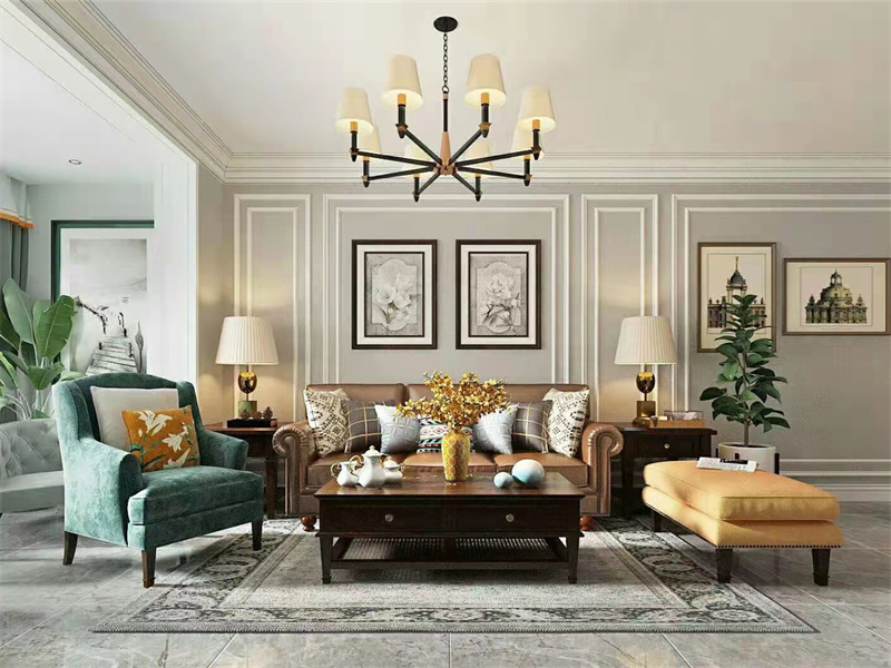 不管是硬装设计、还是软装搭配,均诠释美式居室空间的对称美学,融入简洁时尚的设计理念,优雅而温馨。