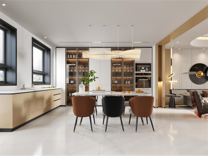 作为家中的用餐功能空间,餐厅在装修布局时除了要注重优雅温馨就餐氛围的营造,也要注重其收纳功能布局设计。餐厅收纳建议平衡“展示+储物”,提升就餐仪式感。
