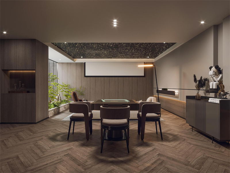 融合轻奢细节,通过浅木、低饱和色系与质感材质的搭配,奠定柔和松弛的空间基调。