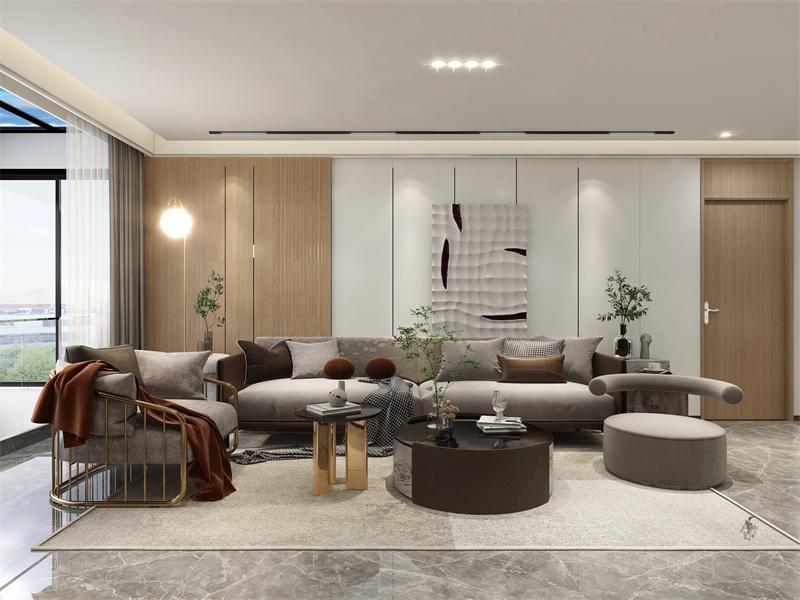 融合轻奢细节,通过浅木、低饱和色系与质感材质的搭配,奠定柔和松弛的空间基调。