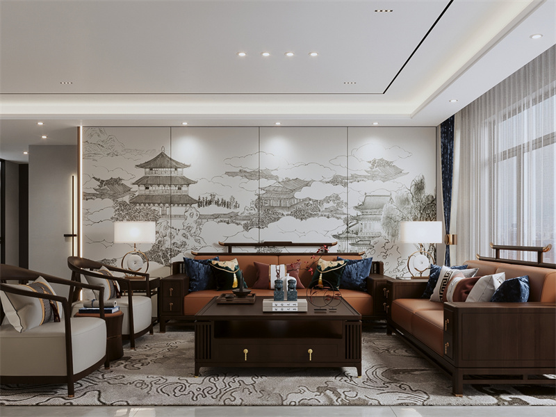 考虑到分层居住的生活方式,客厅成为家庭成员公共活动的核心区域。采用新中式与现代结合的风格,让一家人在现代氛围中感受中式文化魅力。
