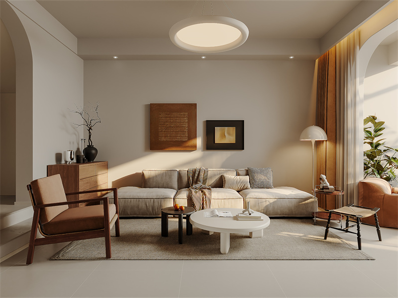 本案以奶油色系串联,借金属灯具、艺术挂画等细节注入设计质感,既满足现代家庭社交、休憩、学习等多元生活需求,又诠释“治愈感与设计感共生”的奶油居家美学。