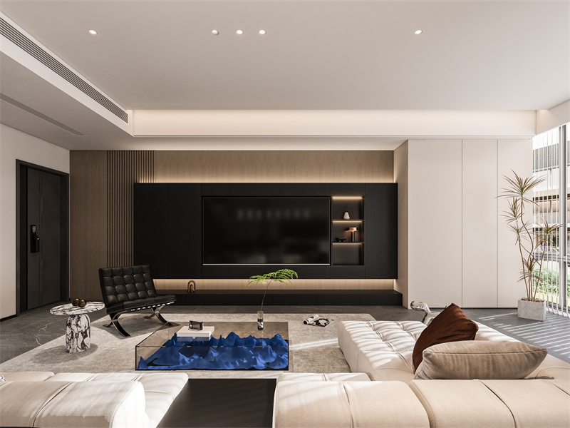以现代极简为核心,通过无主灯设计、材质碰撞,构建统一美学。从公共空间的开放社交,到私密空间的静谧,平衡理性秩序与生活温度,展现理想居所。