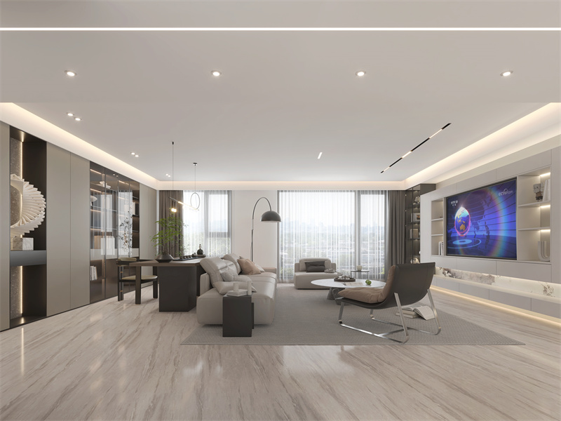 以浅灰、米白为主色调,搭配简洁的线条与通透的布局,营造出大气又舒适的氛围。柔软的沙发、精致的茶几,适合家人休闲观影,也可与朋友在此畅谈,是居家生活中放松与社交的核心区域。
