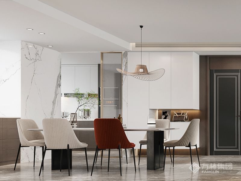 本案以现代简约风格为内核,从餐厅的实用饮食场、客厅的松弛社交域,到卧室的慵懒休憩区,均在简约中融入精致细节,既满足多元生活需求,又以冷静色彩与柔和质感,诠释出“干练与温度共生”的现代简约居家美学。