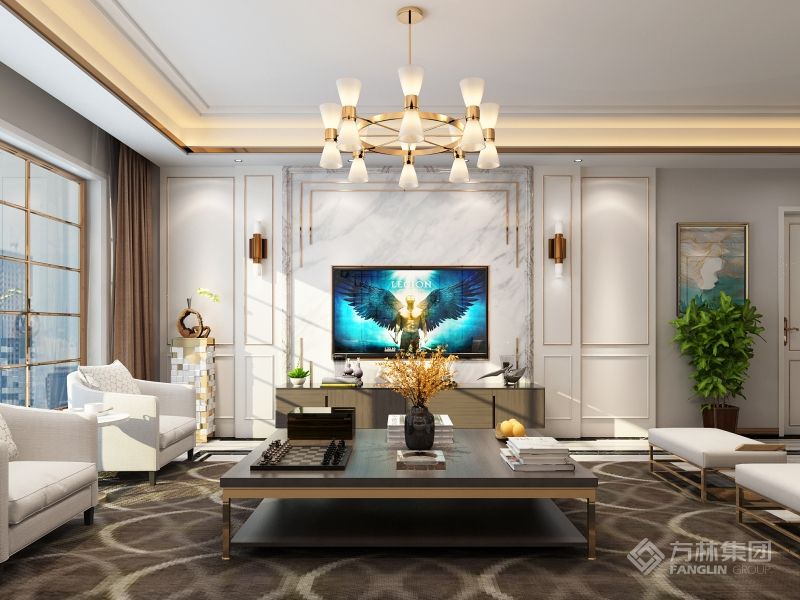 该户型为四层双拼别墅,主要为主业周末及假日休闲居住。在工作中业主有着极强的掌控力,在生活中更热衷于美式生活的轻松自如,所以本案定义为轻奢而不失质感的现代简美。视野明快开阔的大厅及花园能够让人沉下心来尽享悠闲。在原始结构上做较少改动,将重心主要放在氛围营造及细节造型处理,结合色彩、构、线条的元素运用,组合出富有层次感与精致度的高品质居住氛围。