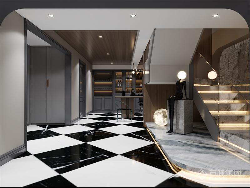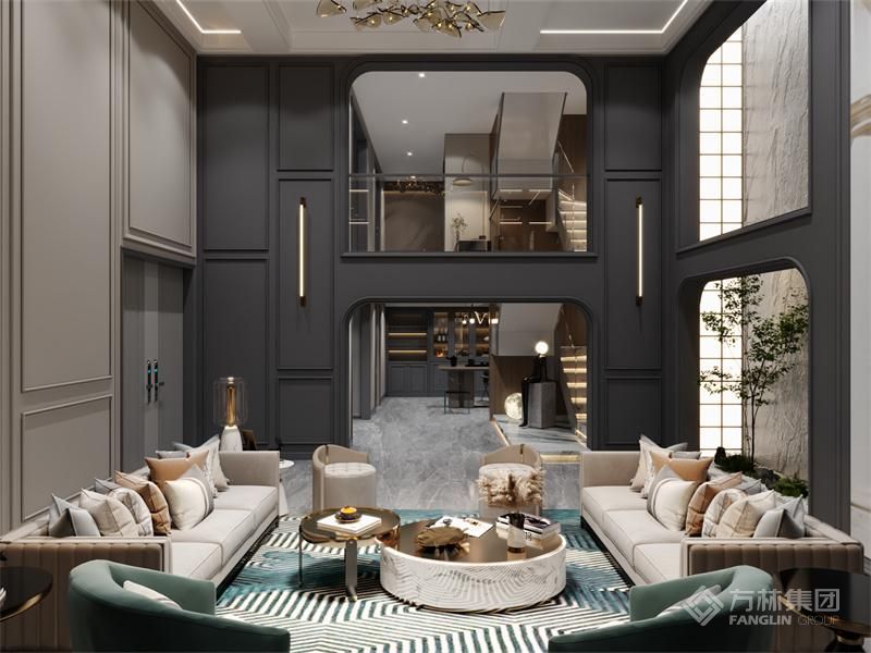 该户型为四层双拼别墅,主要为主业周末及假日休闲居住。在工作中业主有着极强的掌控力,在生活中更热衷于美式生活的轻松自如,所以本案定义为轻奢而不失质感的现代简美。视野明快开阔的大厅及花园能够让人沉下心来尽享悠闲。在原始结构上做较少改动,将重心主要放在氛围营造及细节造型处理,结合色彩、构、线条的元素运用,组合出富有层次感与精致度的高品质居住氛围。