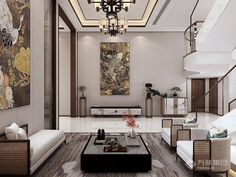 本案聚焦新中式风格,以木色为核心色调,搭配中性色与金属细节。空间中中式对称美学与现代简约设计碰撞,文化摆件与质感材质呼应,既满足社交、休憩、收纳等多元功能,又传递东方雅致格调,诠释传统与现代交融的居家美学。