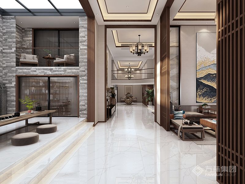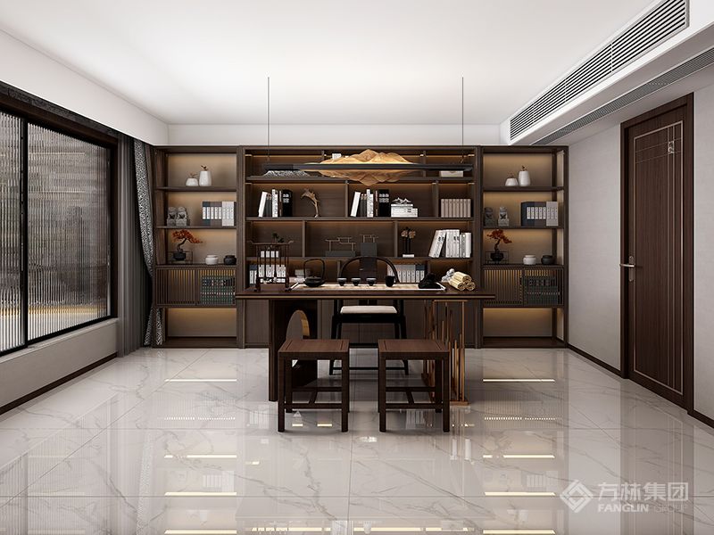 孙多琴设计师对于中式的借景手法一直颇为喜欢,所以在做整个案子的时候首先考虑前厅如何取景让景色进入室内,书房的借景也是同样的道理,整个案子最大的特色就是茶室多,所以在做方案的时候与普通住宅有所区别。