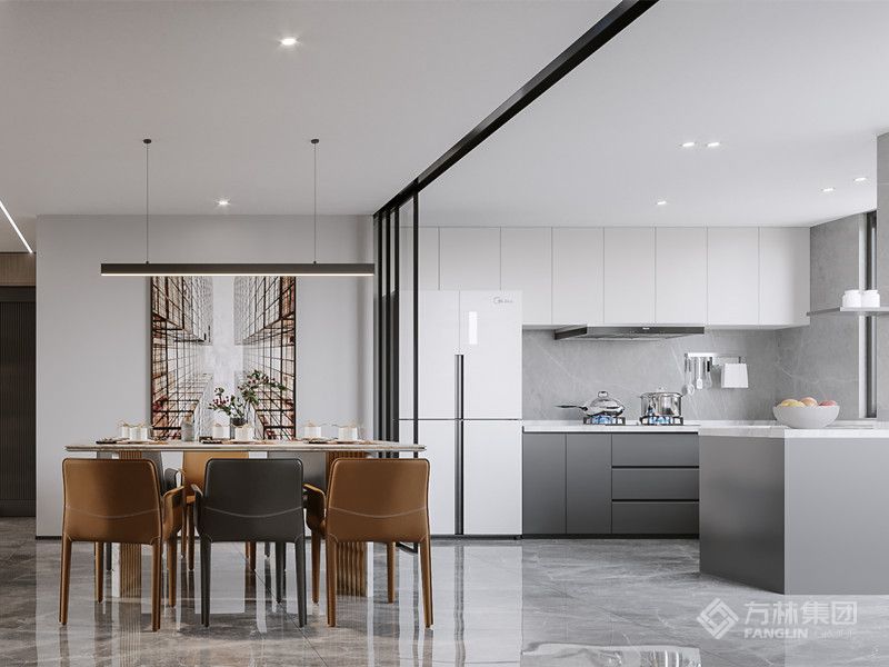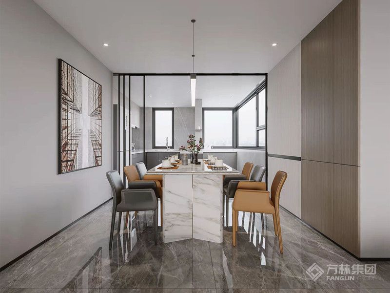 本案以现代简约风格为内核,从餐厅的实用饮食场、客厅的松弛社交域,到卧室的慵懒休憩区,均在简约中融入精致细节,既满足多元生活需求,又以冷静色彩与柔和质感,诠释出“干练与温度共生”的现代简约居家美学。