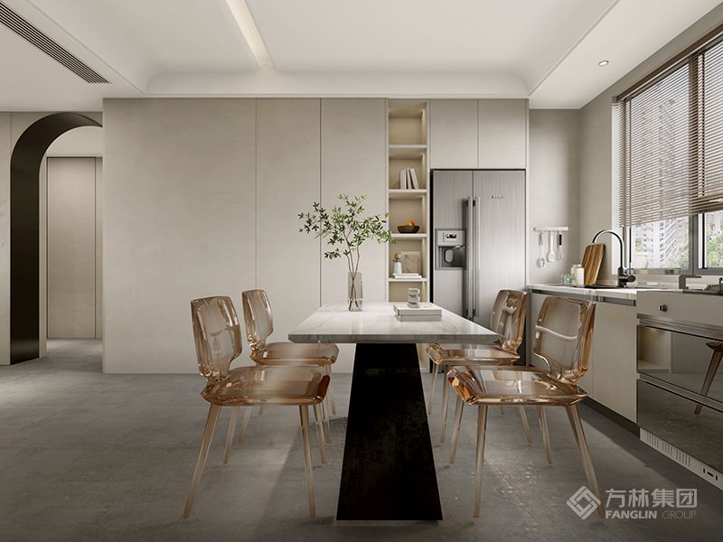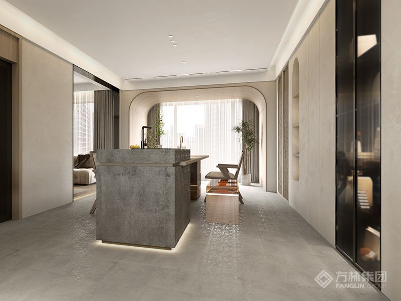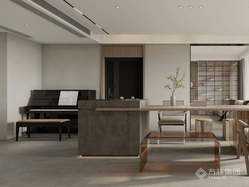 以米白、深灰的低饱和色调定克制基调,浅棕与木饰面注入温暖质感,皮质、石材的点缀强化精致度。冷暖材质碰撞出层次,却无冗余装饰,让空间在简约形制里,既显整洁秩序,又藏生活温度,避免寡淡感。