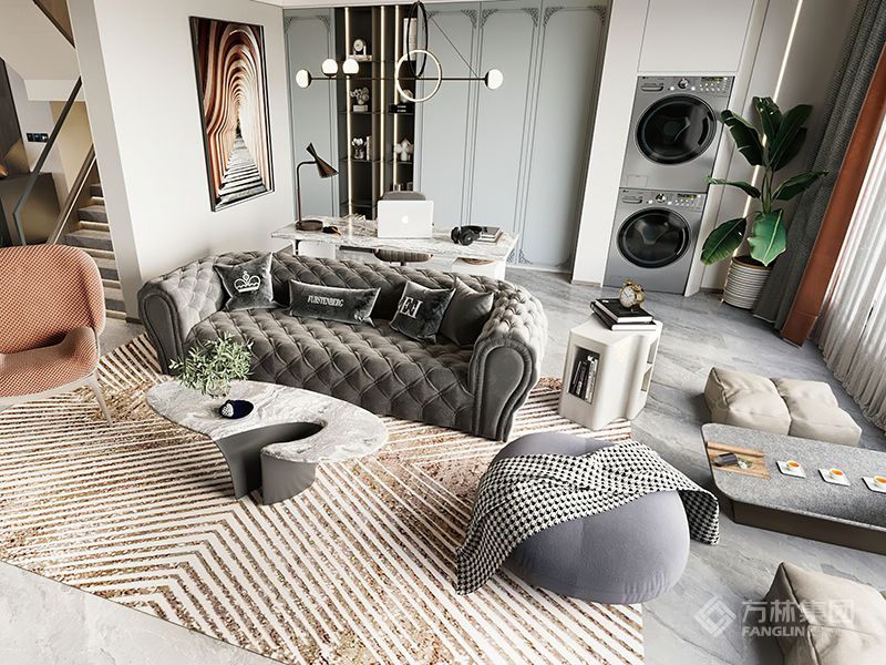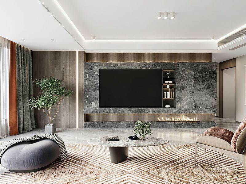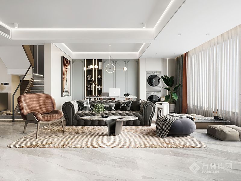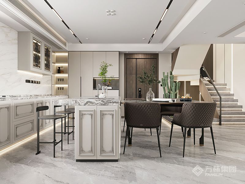 本案以轻奢风格为内核,米灰、暖棕为柔和主调,通过金属线条、皮质、玻璃等质感材质传递精致感。从客厅的格调社交、餐厅的仪式饮食,到主卧的静谧休憩、客卧的多元实用,均在中性色调基底中融入轻奢细节,诠释兼具格调与烟火气的轻奢居家美学。
